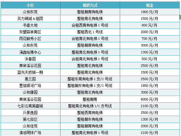 当然了,大队长整理的是主城区的租金,其他地方的租金,可以上安居客等网站查看!(以上的数据来源于安居客)