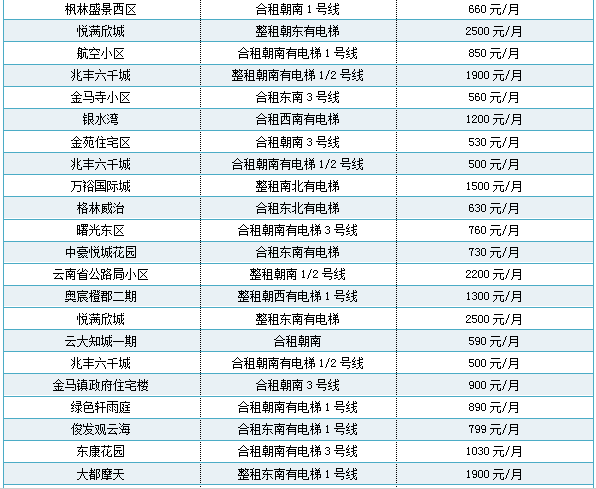 独居的小公寓普遍比合租贵很多。昆明市区小公寓一般月租金都不低,而合租的价格空间就更大了,300-1500元不等,且卧室越少价格越贵。