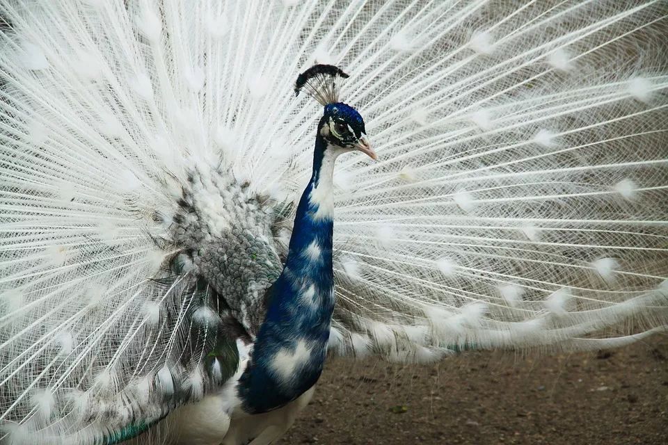色彩变异的孔雀,有斑驳的身体和白色的羽屏丨pixabay