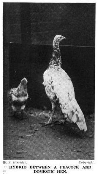 孔雀和鸡的杂交后代。登载在1913年的《乡村生活》(Country Life)报纸上丨W. S. Berridge / google book