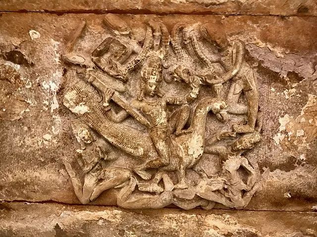 印度神庙艾荷洛(Aihole)里的战神卡尔凯提亚浮雕,坐骑是一只孔雀丨Ms Sarah Welch / Wikimedia Commons