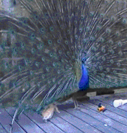 没错,蓝孔雀在物种分类上隶属于鸡形目(Galliformes)雉科(Phasianidae),它和绿孔雀同为孔雀属(Pavo)的物种。通俗一点来说,蓝孔雀和奶奶喂的那两只鸡(此处应有刘欢老师)是亲戚,二者甚至有过杂交记录。