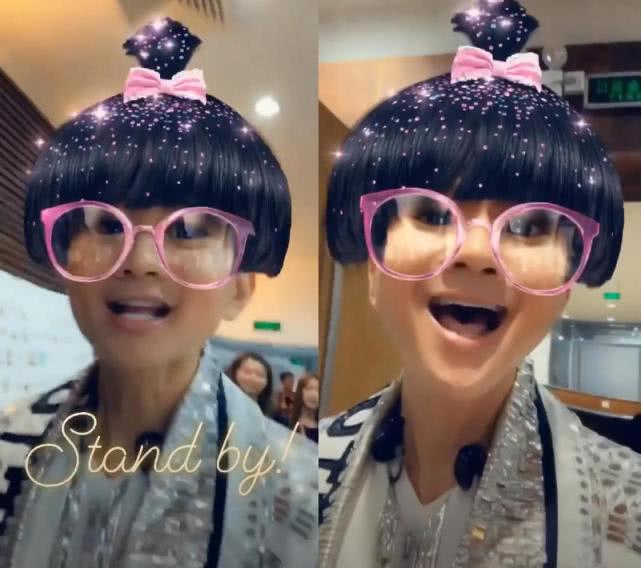 林俊杰选择的这个模板也是女版,搞笑的是头上还系着粉色蝴蝶结……戴着粉色的眼镜略微有些可爱……