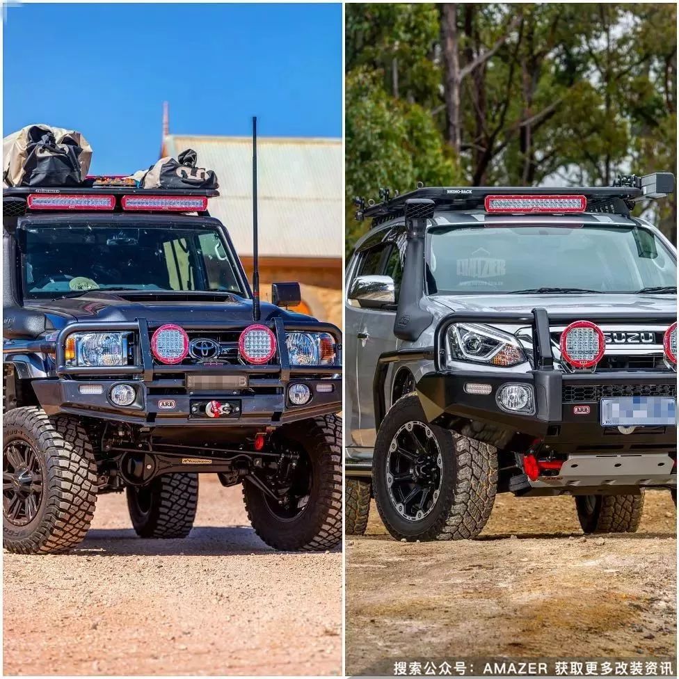 ARB最招牌的产品就是其出品的越野车前杠,我们看到的主要款式有牛栏和撒哈拉款。众所周知ARB出品的前杠初衷是为了在驾驶过程中防止动物的冲击,并且改善车辆的接近角,安装适合车辆的绞盘,加装辅助灯和天线等装备。这么多年不用说大家见到最多的ARB前杠就是牛栏款。