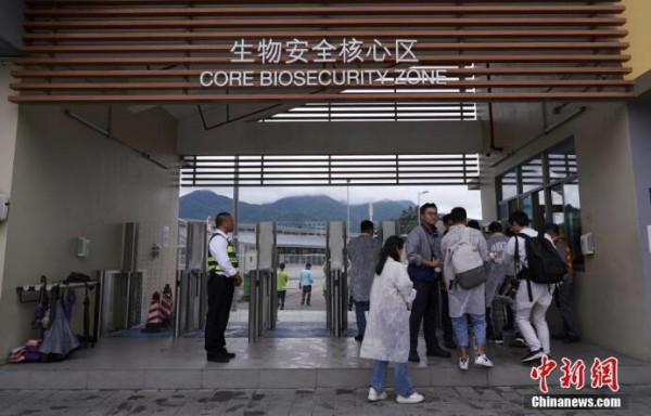 为防止传染病传入,从化马场“高度设防”,长逾5公里的带电生物安全围栏环绕整个马场,防止其他动物闯入,5公里半径范围内绝不容许非香港赛马进入。同时,所有访客在进入马房范围内均须遵从严格的生物安全规定,双手、鞋履均须消毒,以及穿上一次性防护衣。图为人员经消毒后进入生物安全核心区。