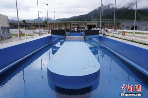 结束一天的训练后,马儿还可在马夫的牵引下,在水深2.6米的游泳池内畅游70米直路或弯路,增强心肺功能,以及舒缓腿部承受的压力,改善健康。 图为马匹游泳池。