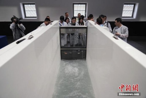 从化马场还设有专业化的马匹康复治疗中心,记者看到专供马儿享用的冷盐水疗设施及水力跑步机,可以帮助受伤的马匹慢慢康复。图为冷盐水疗设施。