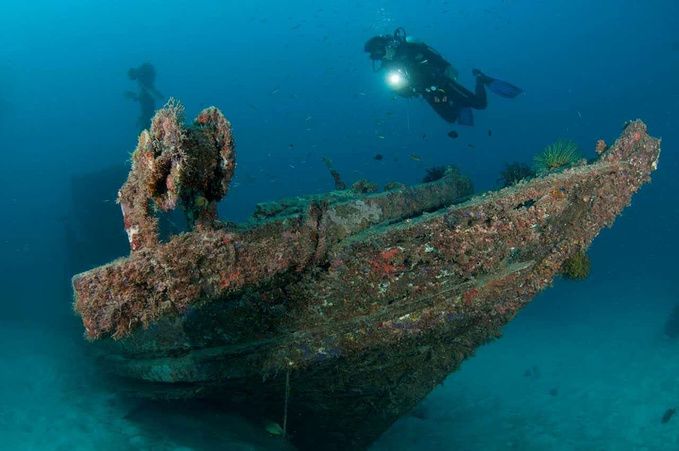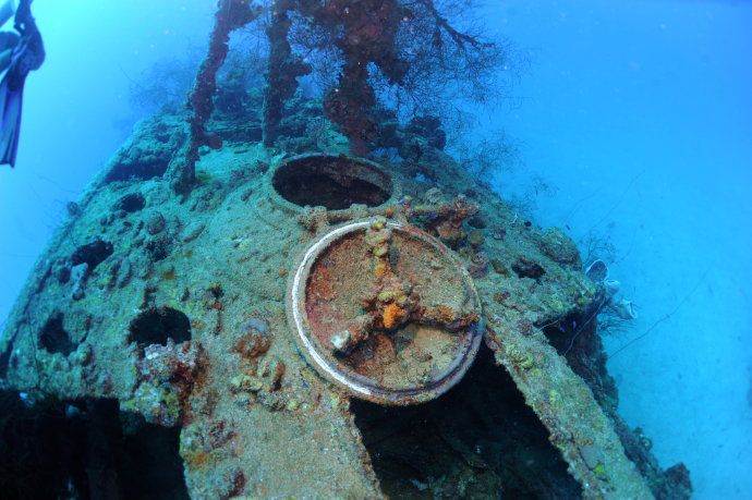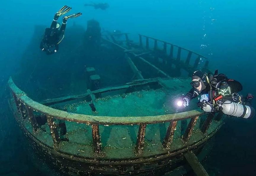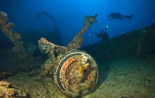 装备齐全:穿全身潜水服,防止沉船潜水时被尖锐或生锈的金属及其他物体伤害身体
