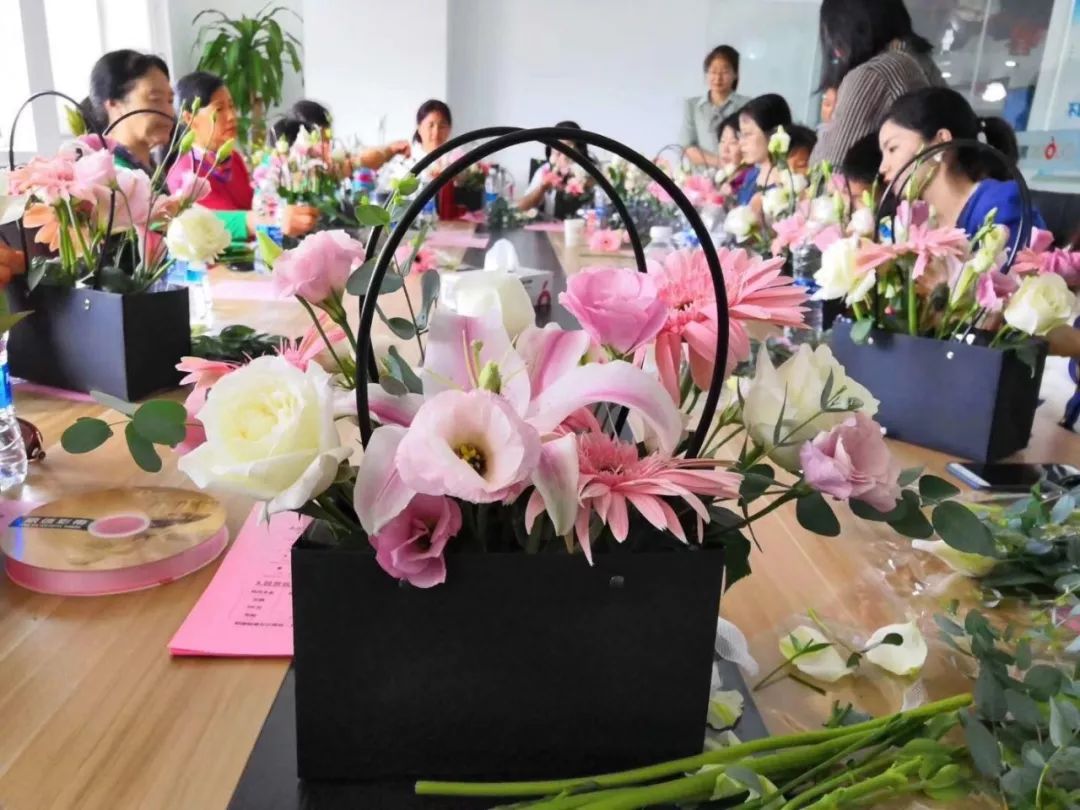 本次活动邀请了专业的花艺老师为大家讲授了插花以及日常养护知识,并从花材、容器、色彩搭配等方面详细介绍了插花造型的要素和技巧手法。
