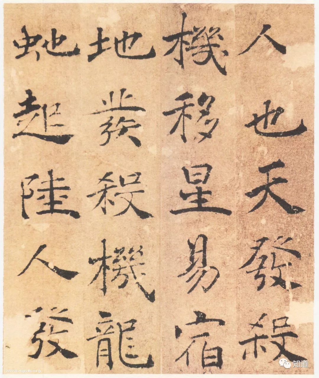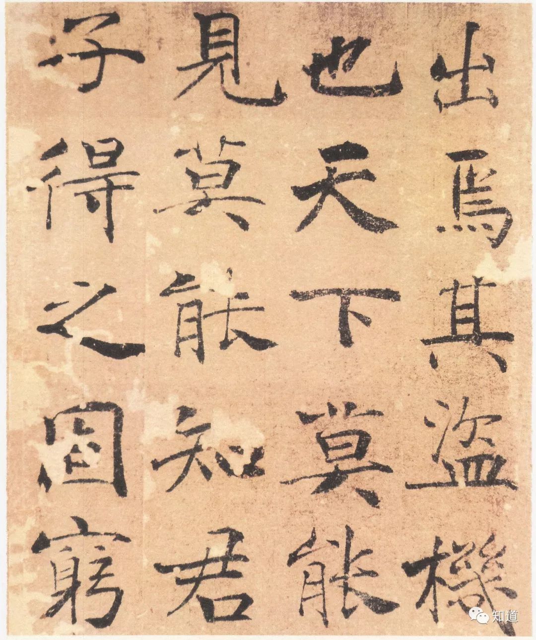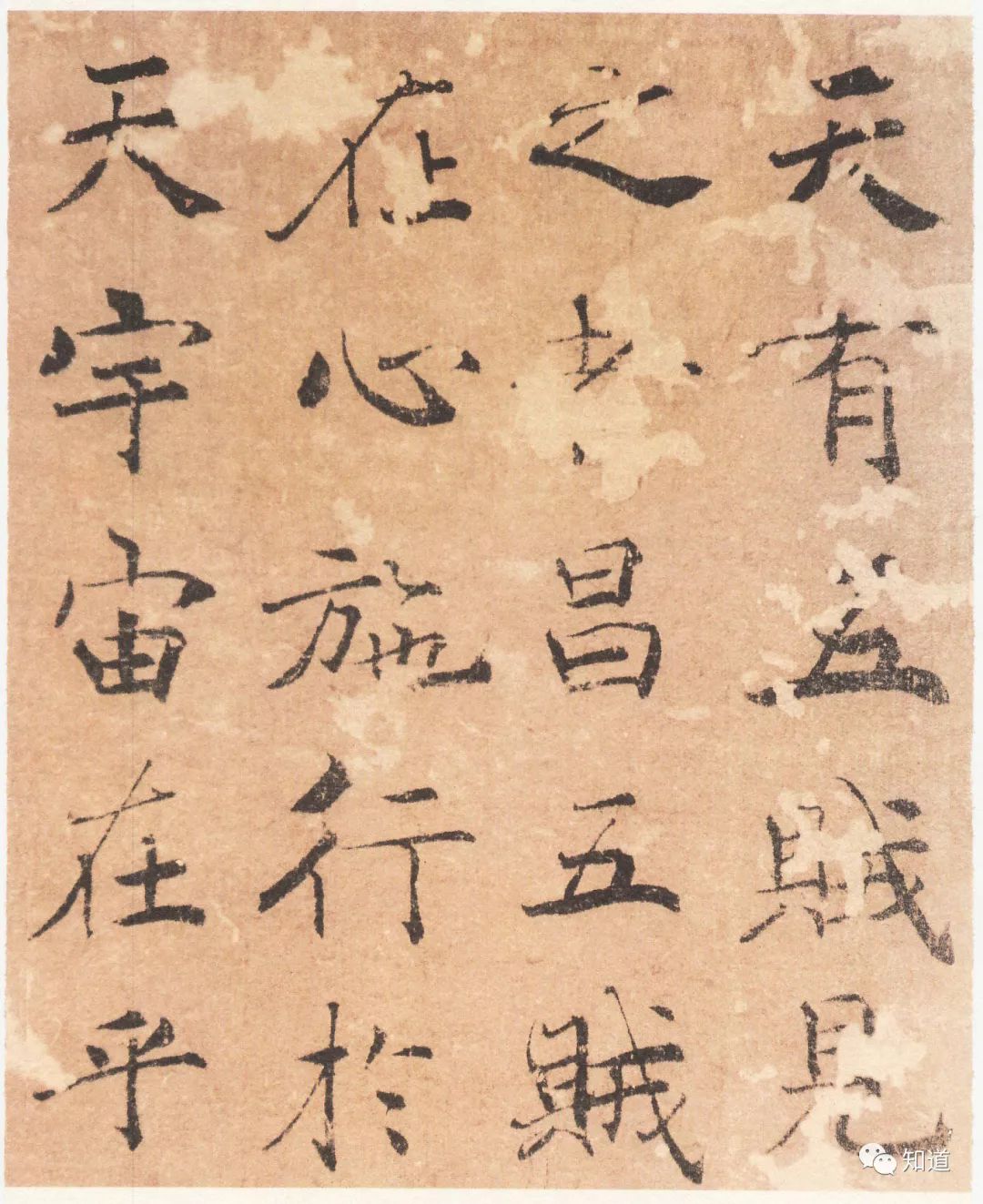 “大字阴符经”墨迹本,96行,461字,传唐代褚遂良书。世传褚遂良楷书有“雁塔圣教序”、“同州圣教序”、“房梁公碑”、“孟法师碑”、“伊阙佛龛碑”、“倪宽赞”等,其中“倪宽赞”为墨迹本,余者为碑刻。