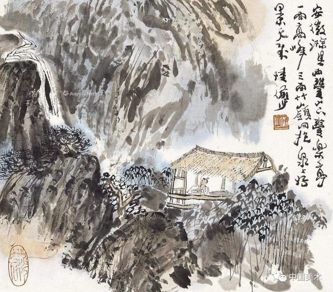 一幅山水画,题款也是一个必要的组成部分。题款首先要选择地位,不能因题款而损坏画面。大致看最上一层山头,或左面偏高,那末右面是其题款的部位。当然也有例外。有时空在下方,或中间的左右方,在这种情形下,必须心中要有个底。