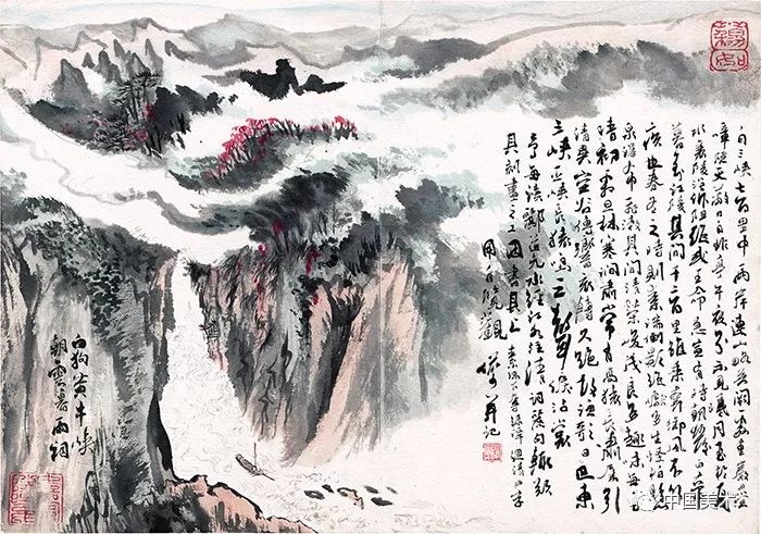 写好山水画的题字,当然文体尽可多样,小品文之外,也可用诗和词,或白话文,也有用古人名句中可以入画者,用作画题。这样用前人旧句,勾起以往游踪的感受,发为图画,我的习惯,当画好之后,多喜写上一段小品文,偶吟诗一首或缀小跋于后。