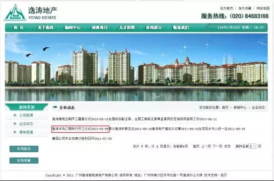 (逸涛官网发布的逸涛半岛三期开工,2012年3月)