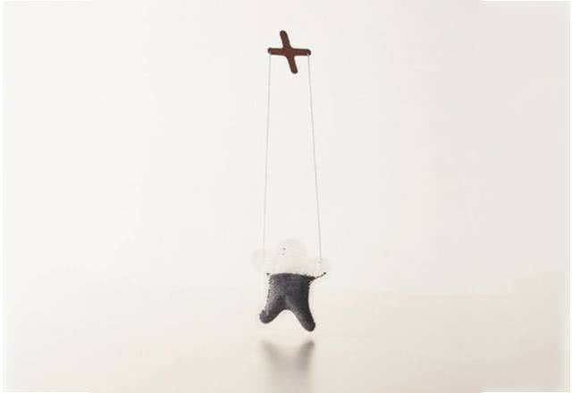 第二个设计则把茶包设计得像个提线木偶,茶包设计成人形,提手部分设计成木偶上控制板的形状。茶水被水浸泡之后膨胀起来,就会变成一个茶色木偶人。