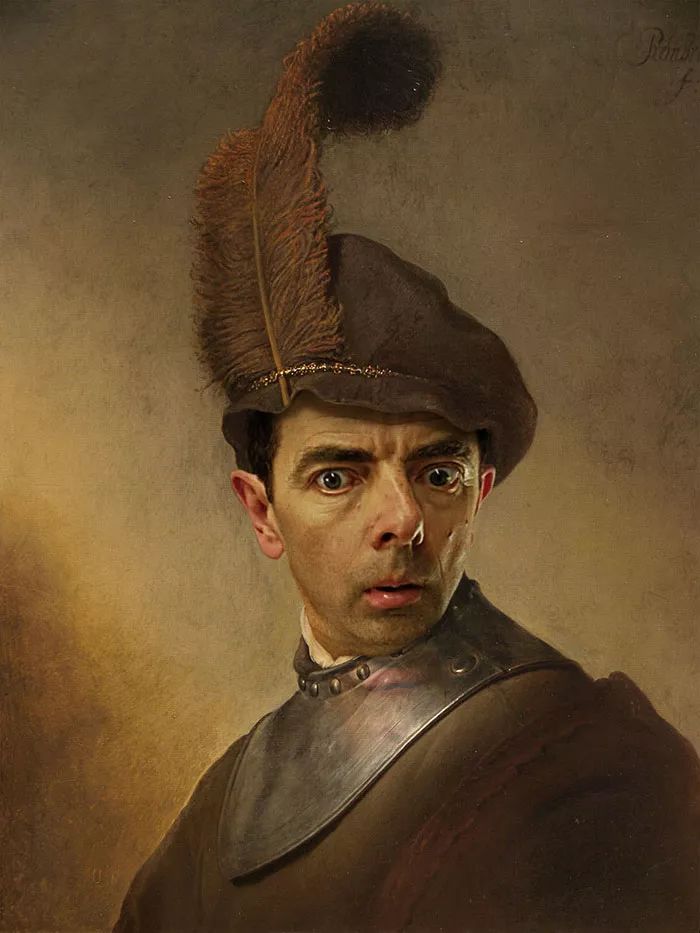 罗德尼画了一系列世界著名画作中的肖像人物,然后将他们的脸替换成了憨豆先生的形象,画面一下子打破了原有的沉闷,变得生动起来。