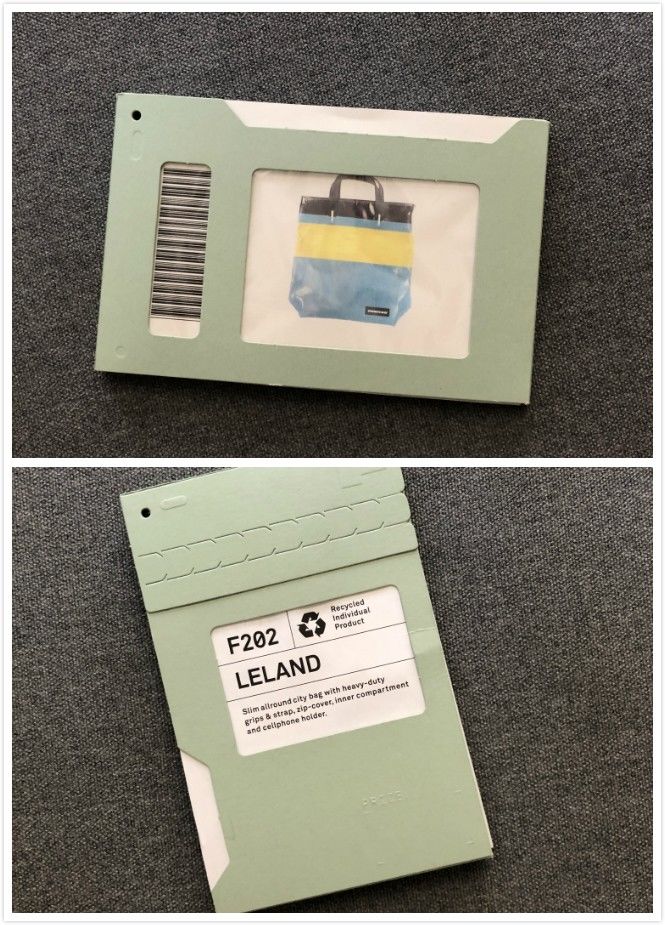 Freitag每一个包包都附有自己的样卡和条形码。