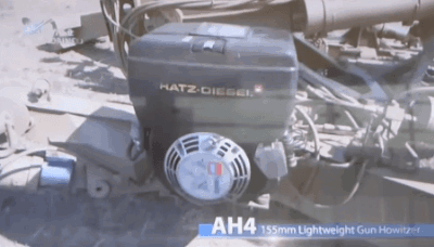 ▲AH-4的阵地操作(地上的杆状物是直送弹杆,M777的是两米长的弯杆儿)