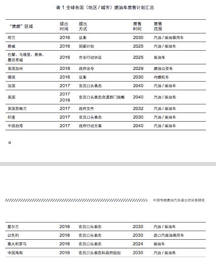 在世界上已公布禁售计划的国家中,《报告》给出的2050年是里面最晚的。截至目前,荷兰、挪威、巴黎、法国、英国、印度等国家均推出了具体的禁售时间表,时间最早的为意大利罗马的2024年,最晚的是法国的2040年。
