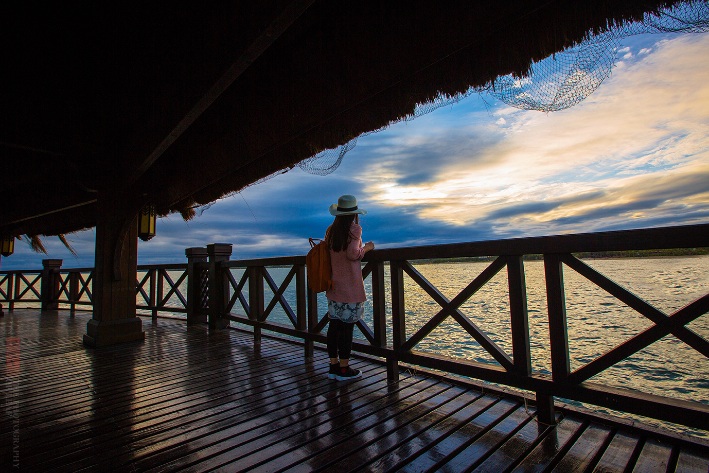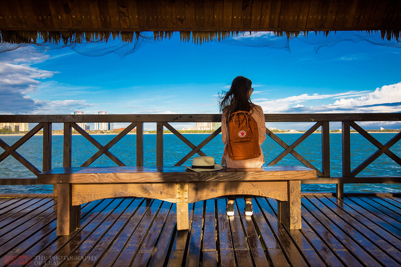 慵懒的午后就想晒着太阳,在沙滩的吊床上睡个午觉发个呆,太惬意了。 但是,我被远处的栈桥吸引了,一下错觉的以为来到马尔代夫,真的是意外收获。