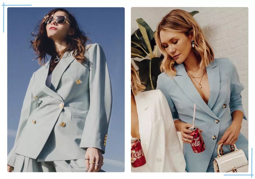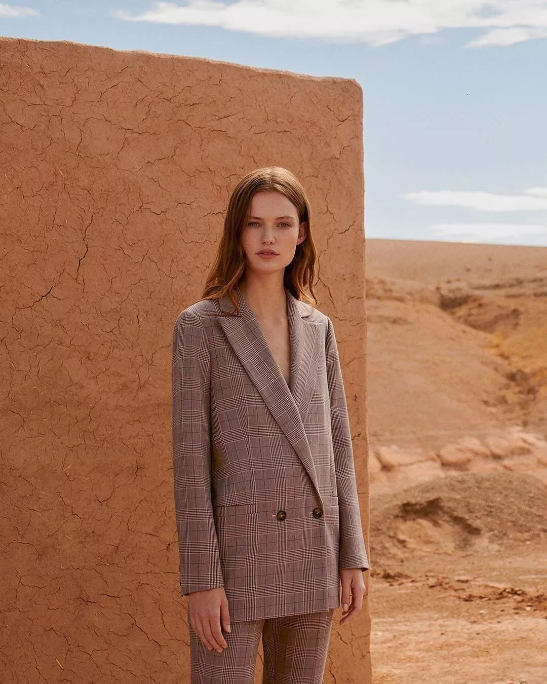 V领西装试穿的时候,由于站立姿势,领口交叉的刚刚好,有一点点性感又完全不会露太大。所以我没有内搭打底,而是直接穿了内衣(因为好看的博主、超模都这么穿)就出门了,内心戏很多的准备去公司Slay全场。