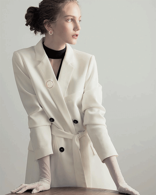 其实,许多博主都会将胸针别在西装衣领一侧或者衣领的相交处,主要是起到做装饰作用,当作是扣子效果也不错。其他季节的单品都可以这么用。
