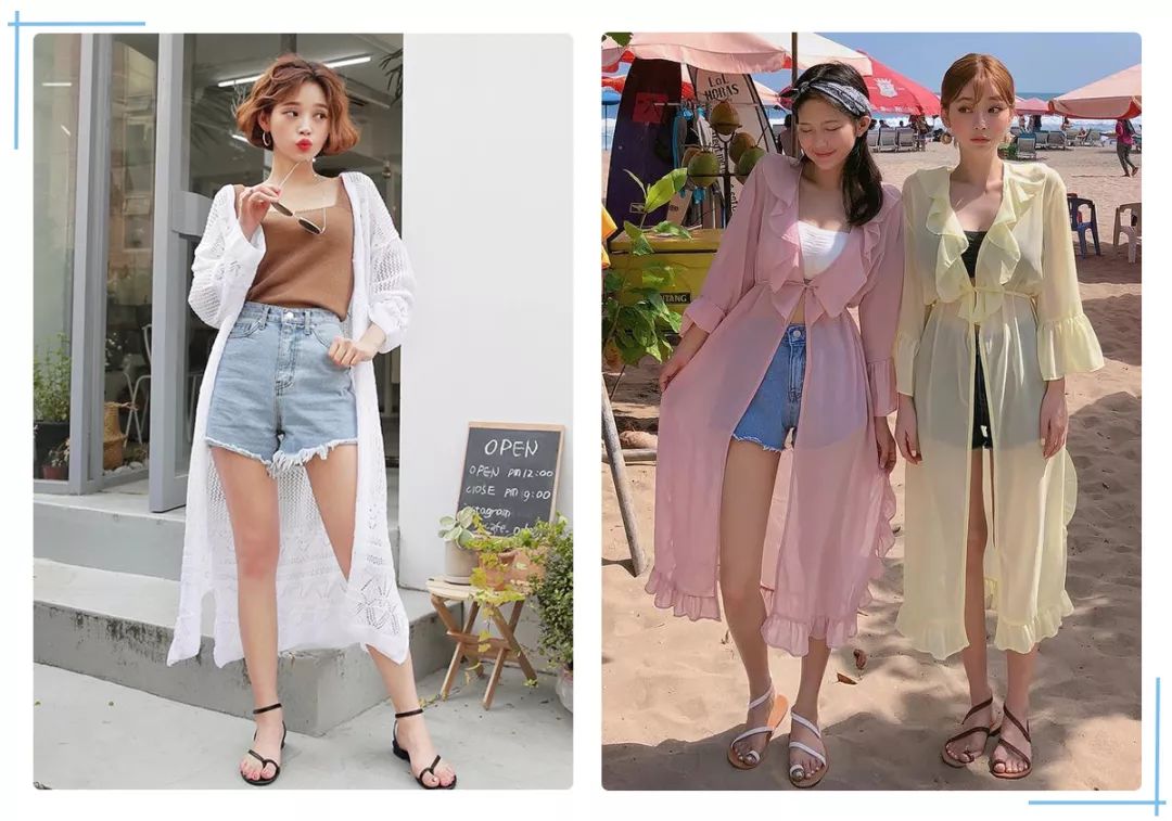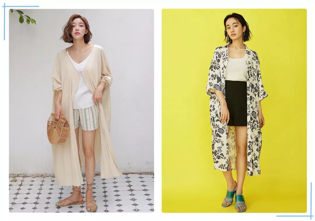 市面上这种轻薄的长衫颜色、款式非常多,不要忘记多准备几件,用来针对不同类型的衣服做搭配。