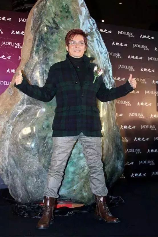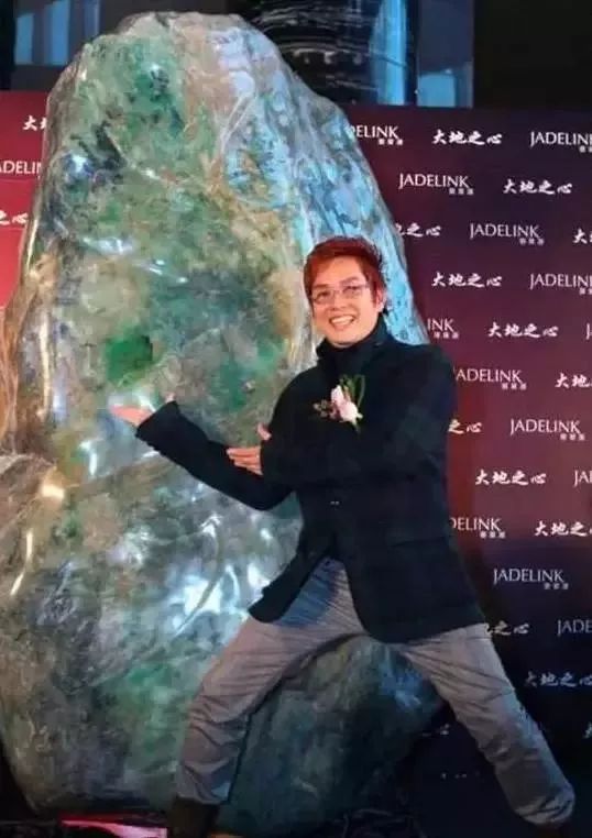 这块翡翠原石叫“大地之心”,高2.68米,宽1.58米,厚1.28米,重约10吨。“大地之心”的种水表现非常好,外皮质地豆种,整体大片的翠绿色,白绿相间,还有丰富的过渡色,个别地方点缀有黑色。当时有人估价至少在3亿人民币,当时还请了明星谭咏麟做宣传。