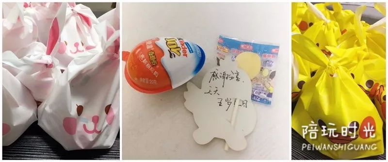 2个奇趣蛋,1包不二家的糖,以及1张小贺卡,里面装的东西虽然不多。但一趟下来,脑细胞死了无数。希望明年家长们都把伴手礼这件事忘了吧,太负担了。