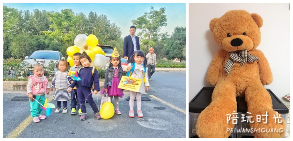 朋友给我儿子准备了一只大熊当生日礼物。谁知,送礼物的时候,她女儿突然抱住大熊不肯放了。