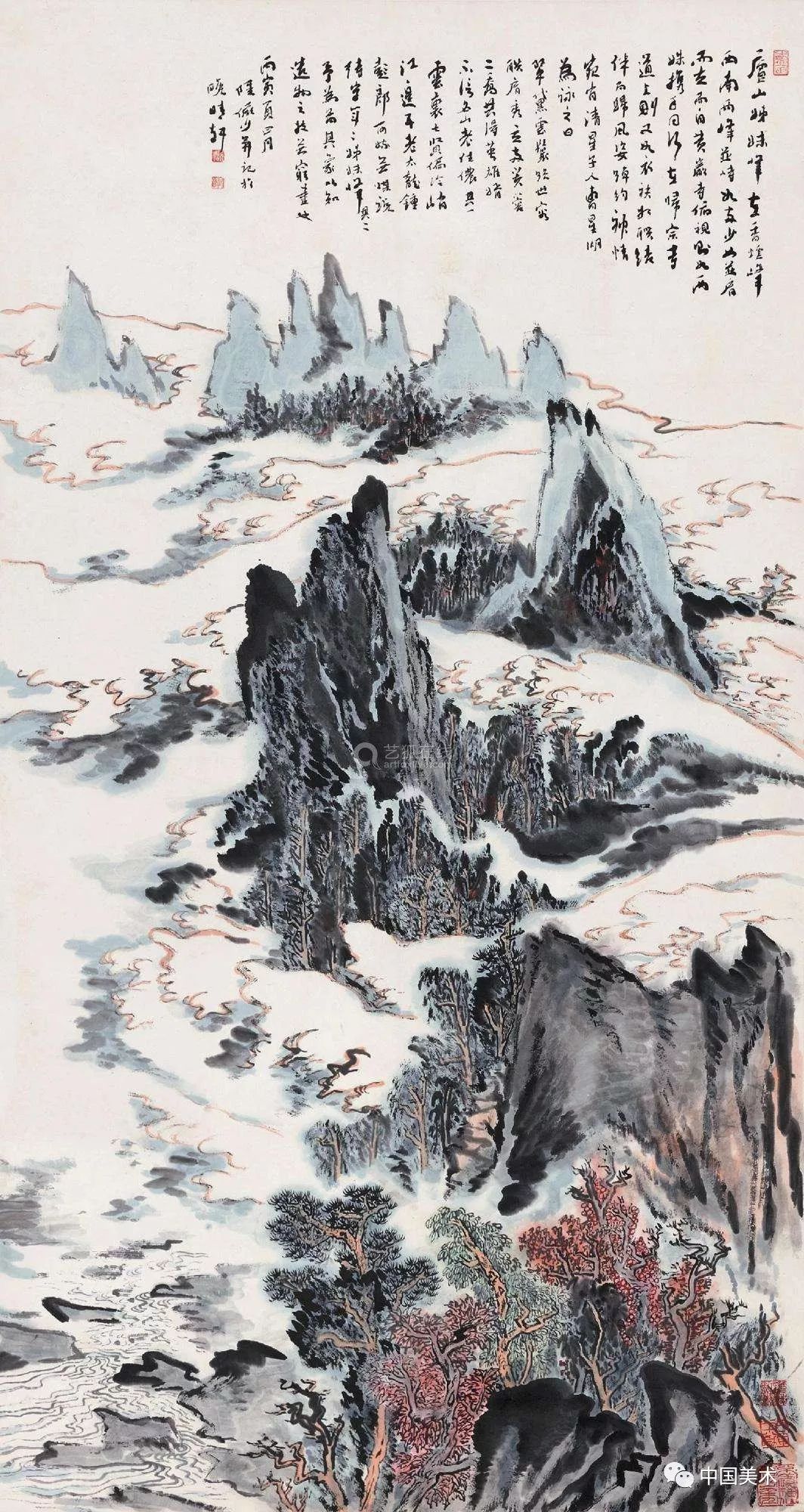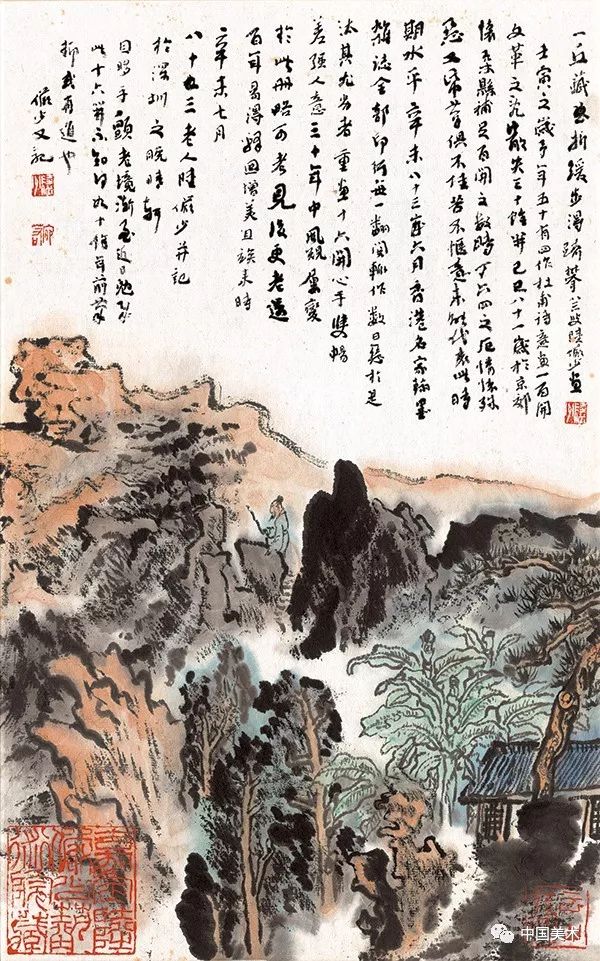 写好山水画的题字,当然文体尽可多样,小品文之外,也可用诗和词,或白话文,也有用古人名句中可以入画者,用作画题。这样用前人旧句,勾起以往游踪的感受,发为图画,我的习惯,当画好之后,多喜写上一段小品文,偶吟诗一首或缀小跋于后。