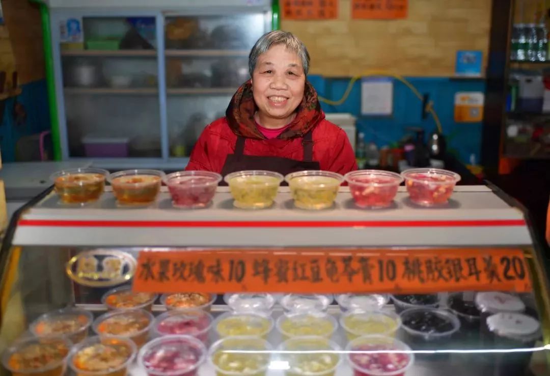 走入太平老街,中间有家卖臭豆腐的店铺,左转进入孚嘉巷,有着这样的一家店,店面很小又有些老旧,柜台里摆放的食品也很简单:清凉的冰凉粉、糖油粑粑,还有秘制的猪皮、关东煮等等,满满当当。在这条有些昏暗、潮湿的小巷里,奶奶的小店还有一点点的小清新。郭奶奶其实不姓郭,她有个好听的名字——刘雪鸾,1949年12月出生。因为丈夫姓郭,被人称为郭奶奶。