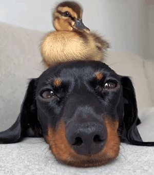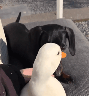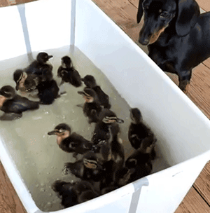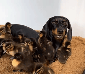 给鸡当妈还没完,主人见Loulou带娃能力如此出众,嗅到了商机,又收购了一批鸭,也交给Loulou带。