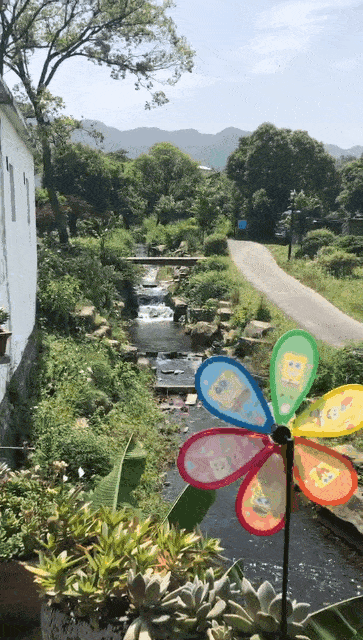 老板还在院子里插上七彩风车,配着远处的瀑布,乐活妹的朋友圈美照有了。