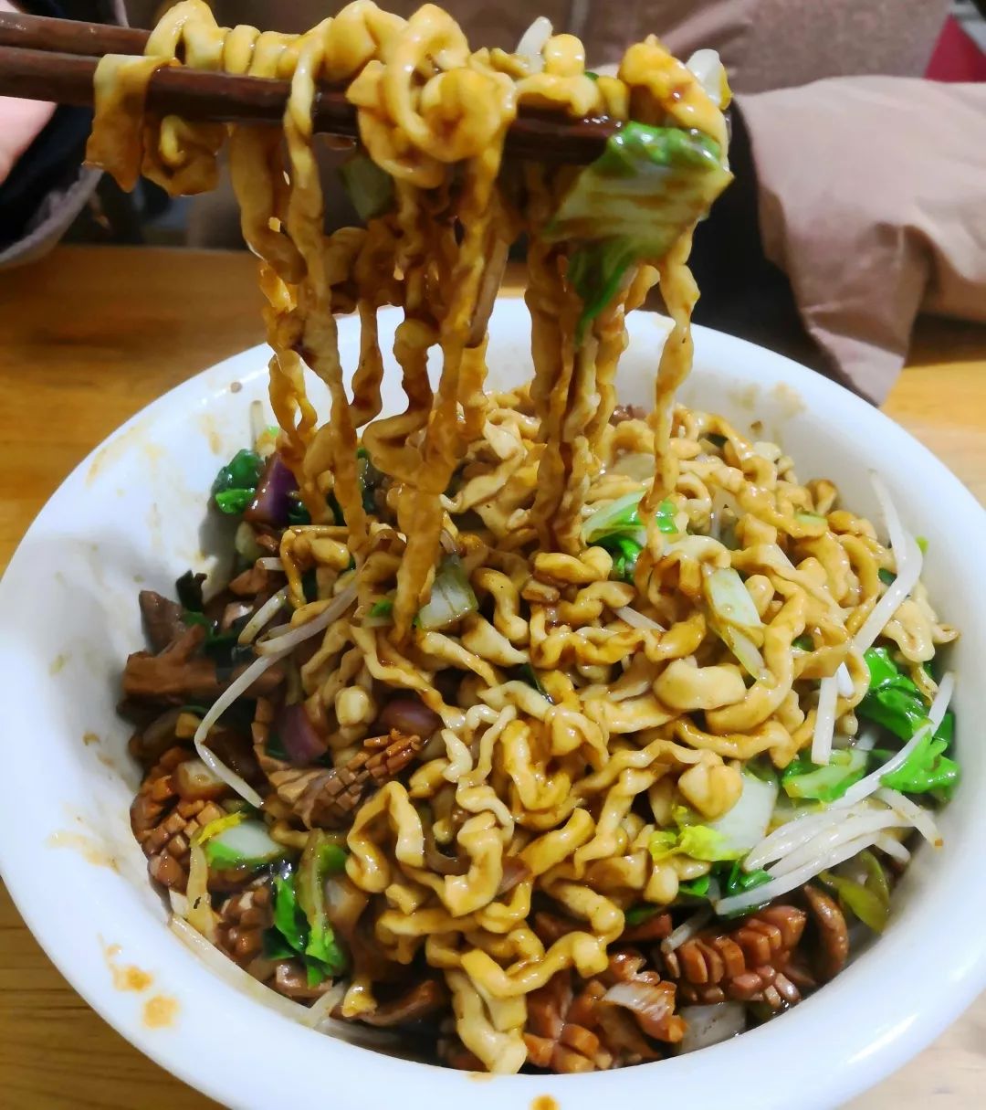 和前两家一样,他们家的面也是一碗碗浇头爆炒出来的,老板最后的一个动作是搁一大勺猪油。过瘾。