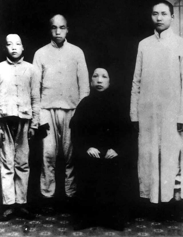 图片:1919年毛泽东、毛泽民、毛泽覃与母亲合影