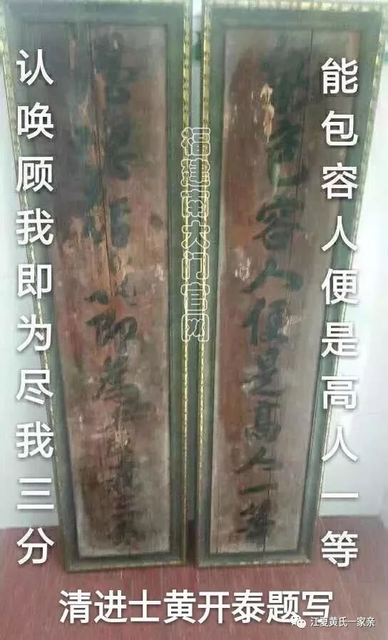 黄开泰进士为人公正,是非清楚,处事宽厚,威望很高。当年他尊家训,和乡邻,理智处理与邻村纠纷械斗的风波,受到好评。
