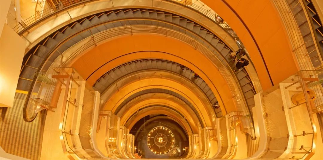 新世界大丸百货的香槟色旋转电梯是整座建筑的点晴之笔,从高处向下看去,一圈圈让人止不住赞叹。商场顶层采用开合式玻璃穹顶和巨型LED屏幕,加上自然光线的照射,拍照时简直是神来之光,加之电梯的动态感,恍若穿越。