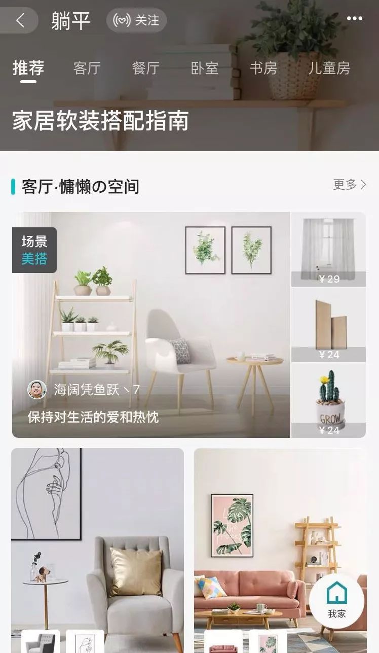 不知何时起,INS风开始风靡,跟着INS博主学穿搭、美妆之外,家装也逐渐被用户所接受。但纵观国内市场,专注于家装种草的似乎寥寥无几。加上基于综合类种草平台已有小红书称霸,而一个更加垂直的平台,将有利于阿里切入种草平台的心态,躺平也就应运而生。