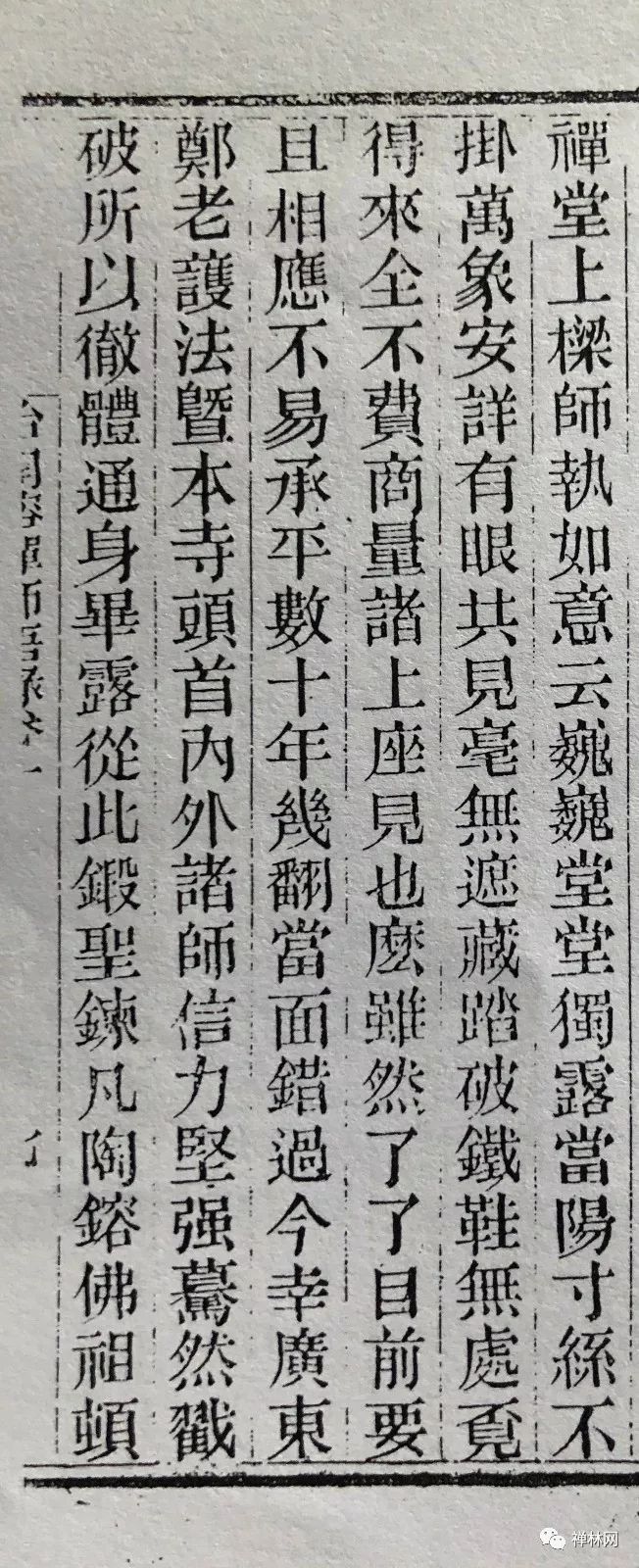 禅堂上樑。师执如意云:巍巍堂堂,独露当阳。寸丝不挂,万象安详。有眼共见,毫无遮藏。踏破铁鞋无处觅,得来全不费商量。诸上座见也么?虽然了了目前,要且相应不易,承平数十年,几翻当面错过。今幸广东郑老护法暨本寺头首内外诸师,信力坚强,蓦然戳破。所以彻体通身毕露,从此锻圣鍊凡,陶镕佛祖,顿断衲子命根,频开禅和正眼。任从顽铜钝铁,到此尽净消镕。纵使铁眼铜眼,也要从头炼过。且道具何本领,乃有如此作用?
