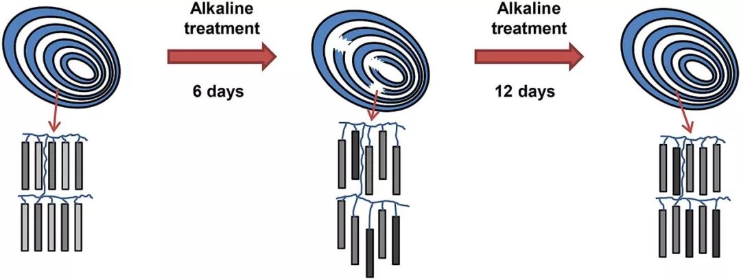 蜡质玉米淀粉又称为糯玉米淀粉,其支链淀粉含量常高达95%以上。相比其他类型淀粉,由于直链淀粉含量较低,蜡质淀粉具有较慢的老化速率。适度的碱处理常用于碱水面,粽子等谷物食品的加工。研究碱处理对谷物中淀粉结构产生的影响,尤其是对淀粉颗粒的多尺度半结晶片层结构的影响具有重要意义。