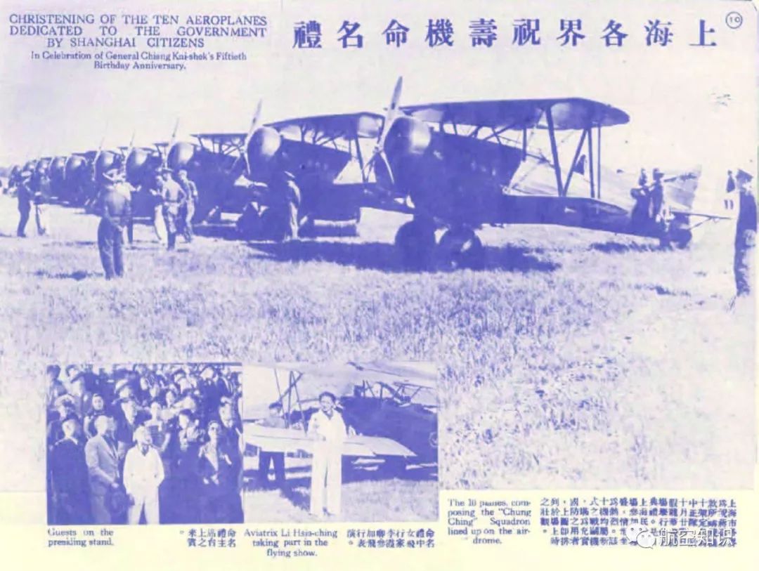 1936年10月24日,“中正队”10机在上海龙华机场进行命名礼。女飞行家李霞卿进行了飞行表演。
