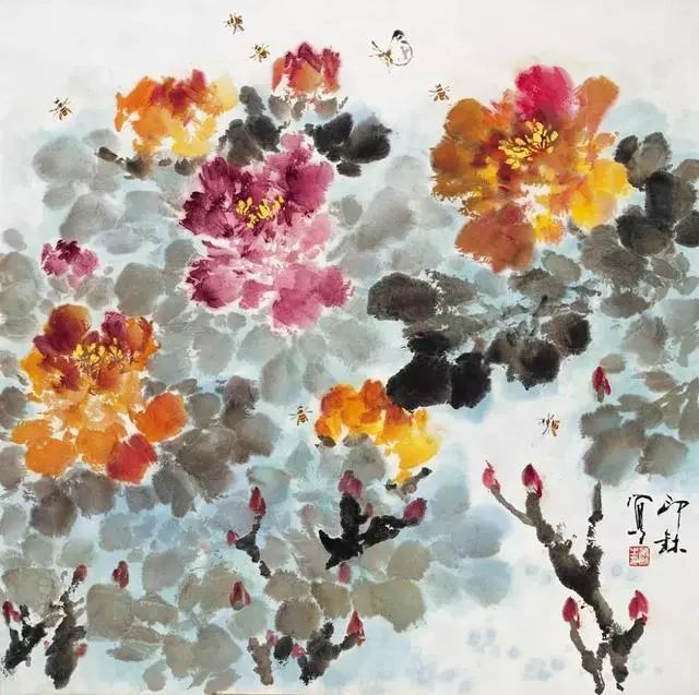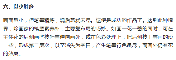 画面,是笔墨形色组成的视觉“交响乐”。花有大小开合,茎有长短多少,叶有政策聚散,墨色有浓淡冷暖,线条有粗细刚柔。一切绘画的要素都处在矛盾对立之中。从而产生无穷的变化和蓬勃的生机。