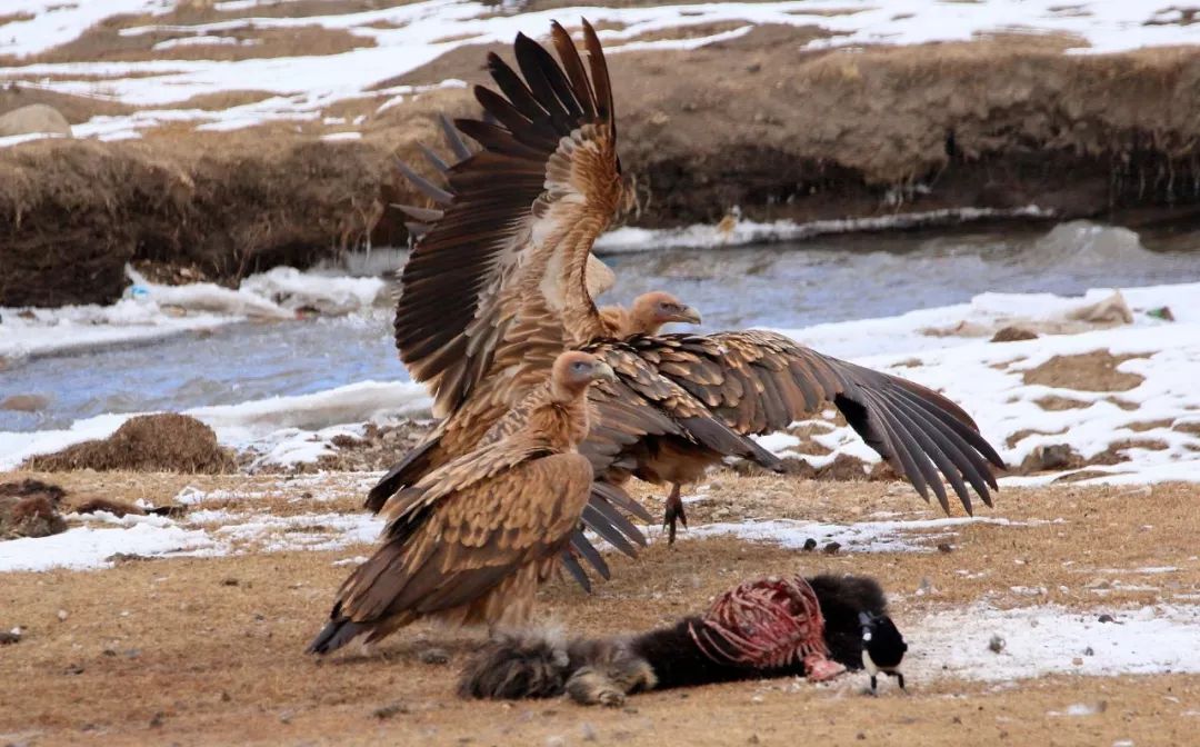藏族人认为秃鹫是大德和菩萨的化身,秃鹫在他们的心目中不是死亡的象征,相反是吉祥的预兆,除了在天葬台能看到成群的秃鹫,平时很少见到。