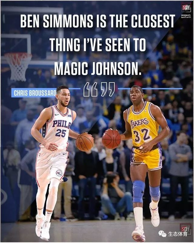 魔术师约翰逊几乎被一致认为是有史以来最好的控球后卫,事实上,他的比赛对于今天的NBA仍然是完美的,同为2米06的控球前锋,他让本-西蒙斯看起来像埃曼纽尔-穆迪埃。
