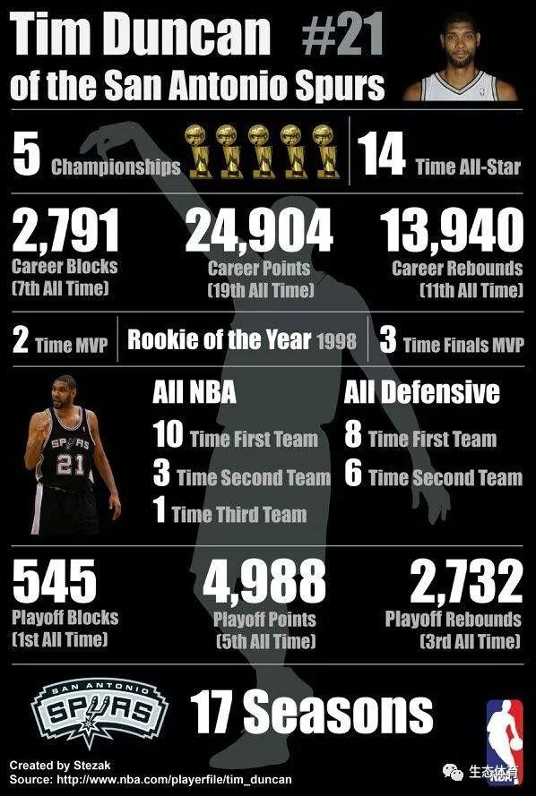 NBA历史上有比蒂姆-邓肯更出色大前锋吗?他的20年如一日的坚如磐石般的稳定积累起来的数据和成就,让他的后辈们难以望其项背。