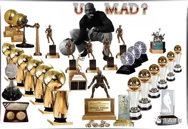 乔丹的统治力无人能及。这点在球场的攻防两端都体现的淋漓尽致,永远不会有谁能像他这样。在他的职业生涯中,乔丹赢得了6次NBA总冠名,6次总决赛MVP,5次MVP,1次年度最佳防守球员,年度最佳新秀和3次全明星赛MVP。