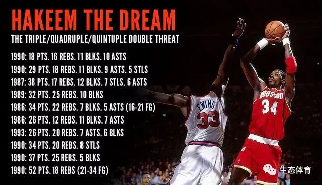 今天的火箭队球迷眼中可能只有詹姆斯-哈登,而已经淡忘了巅峰期的大梦奥拉朱旺在球场的攻防两端是怎样的一个统治力。