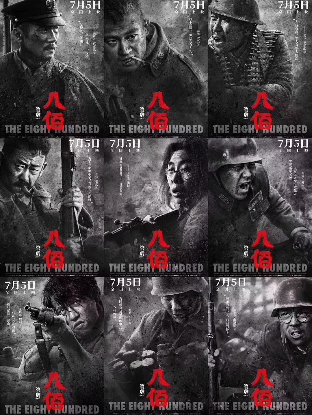 同时,《八佰》还发布了“英雄本无名”系列人物海报,演员黄志忠、欧豪、王千源、姜武、张译、杜淳、魏晨、李晨、俞灏明(按影片出场顺序)角色造型首次曝光,“八百壮士”孤胆忠义的形象初露一角,军人铁血“报效家国”的精神力透纸背。