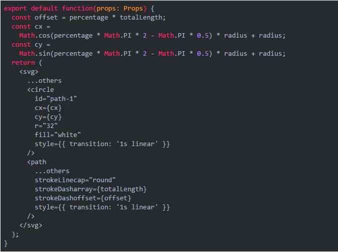 有些样式可能用 css 实现难度较大,而用 svg 的方式实现起来非常简单。比如倒计时 UI,路径圆角和路径长度用 CSS 实现复杂度较高。可以在 Sketch 上直接绘制处理,导出成 svg,直接通过 react 代码控制。