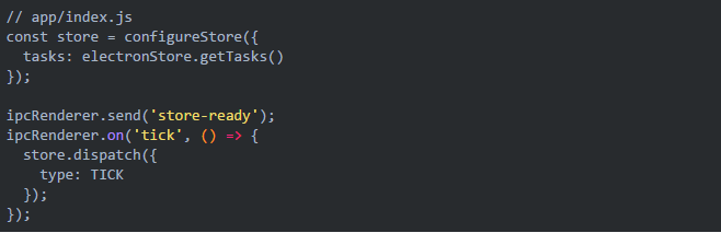 渲染进程就收事件并将 dispatch TICK action。